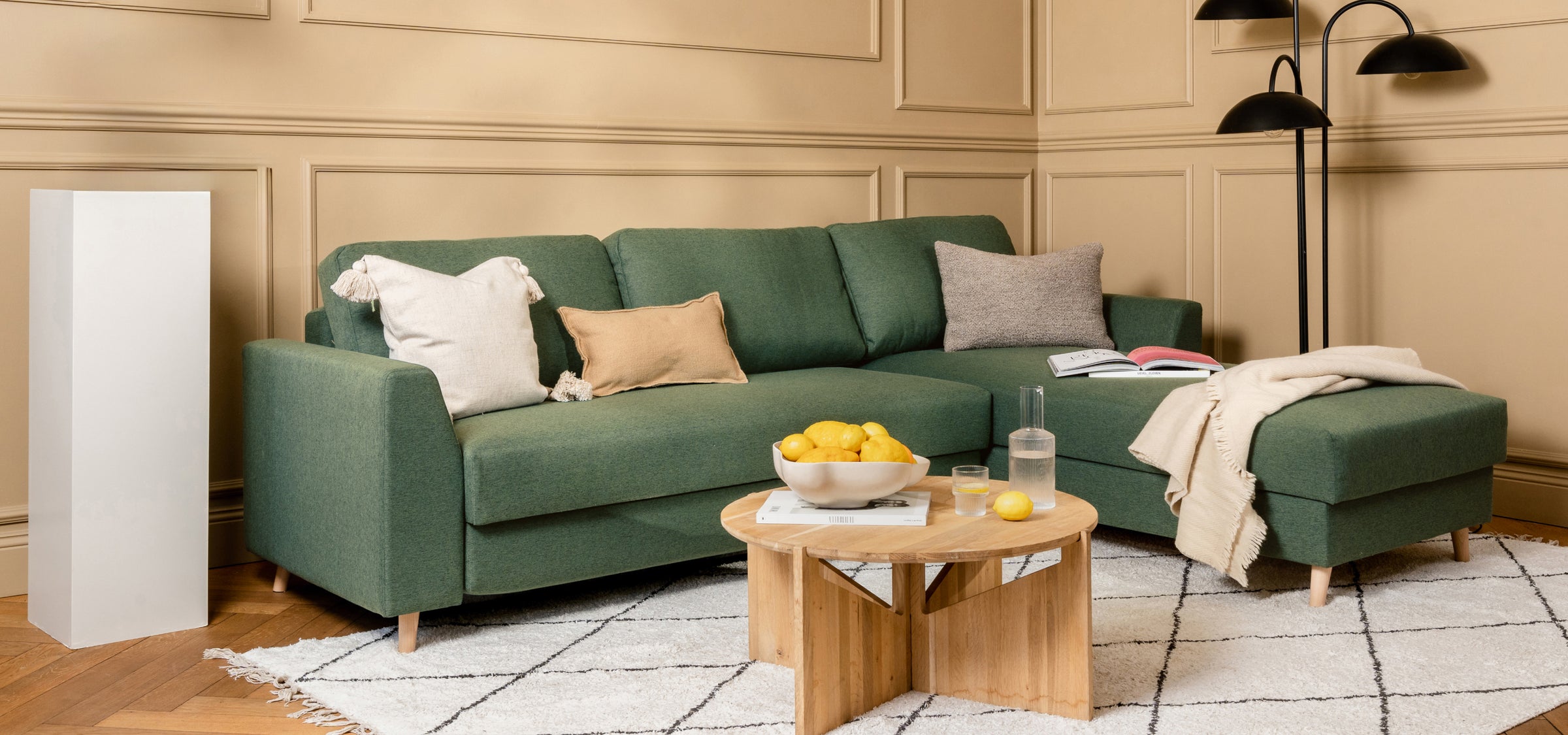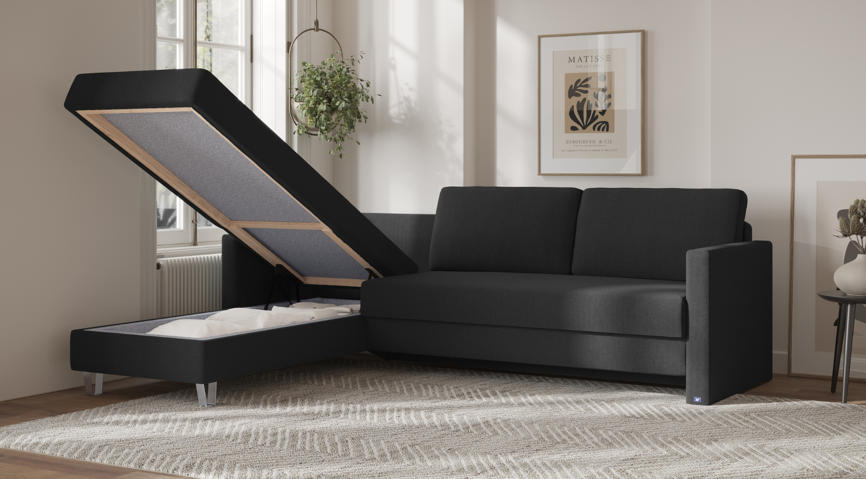 Die kürzere Recamiere bietet rund 143 Liter Stauraum und die längere Variante ganze 185 Liter – genug Platz für Decken, Kissen, Kisten und vieles mehr.