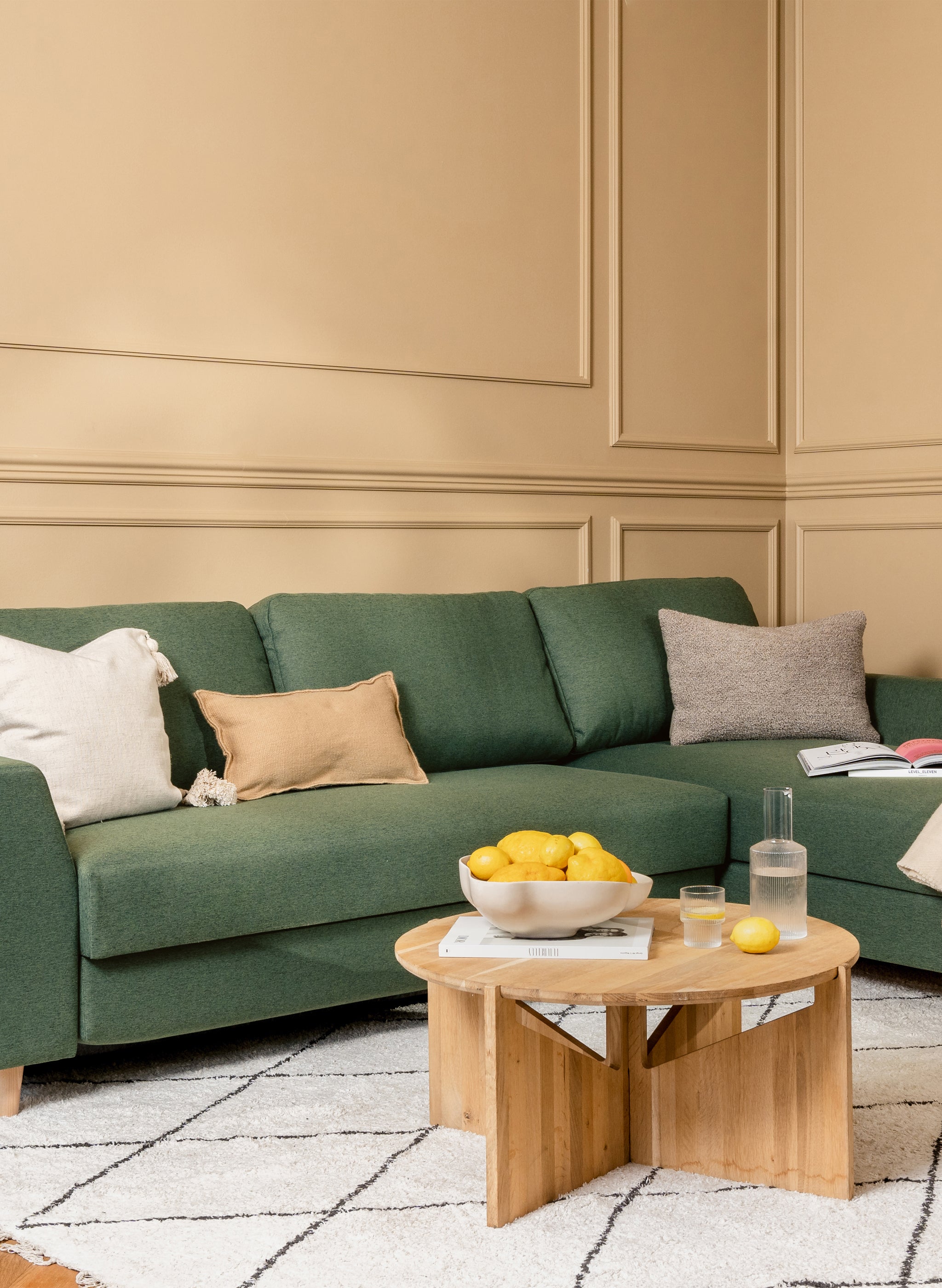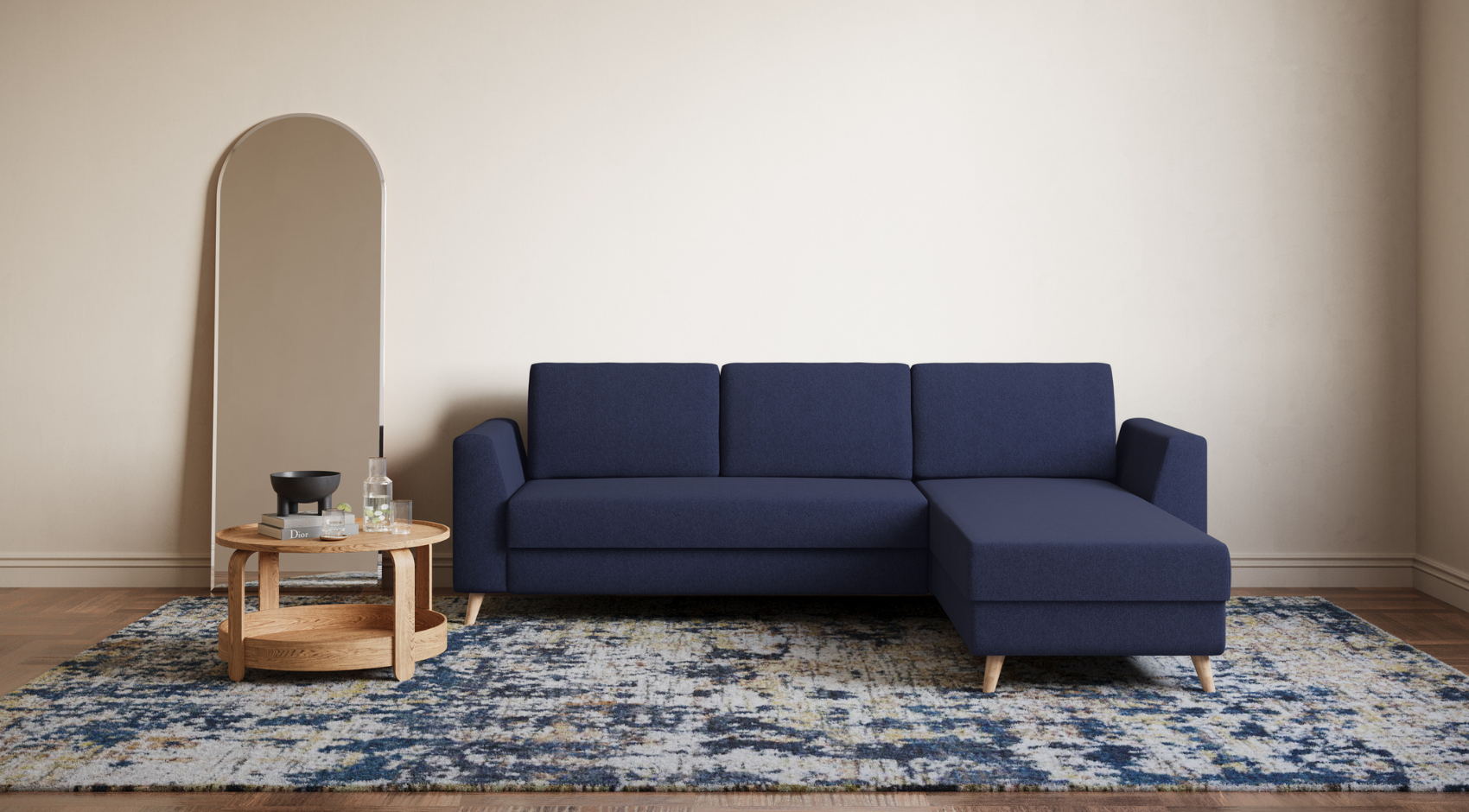 Der Rahmen des Ecksofas besteht aus robustem Massivholz. Dadurch garantieren wir langlebige Stabilität und Schonung der Ressourcen.