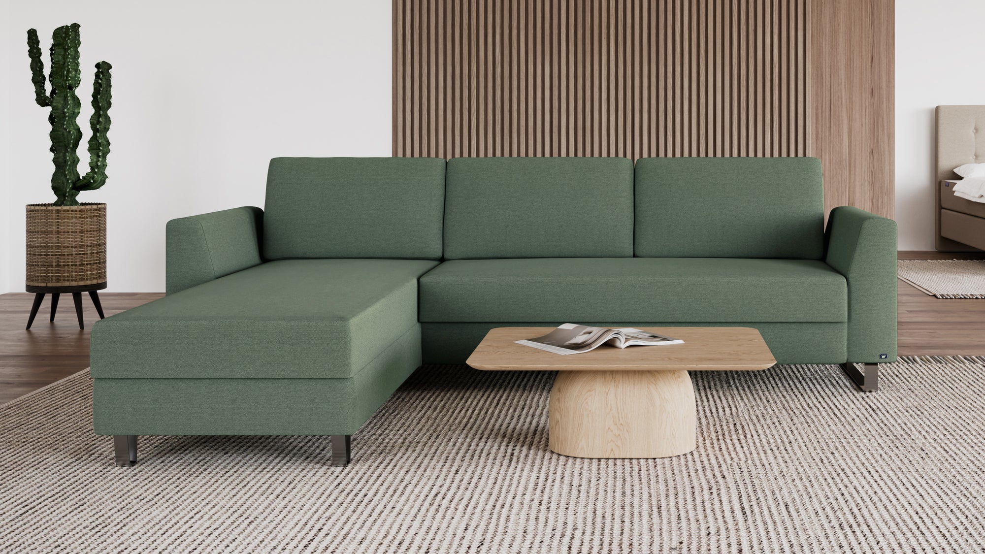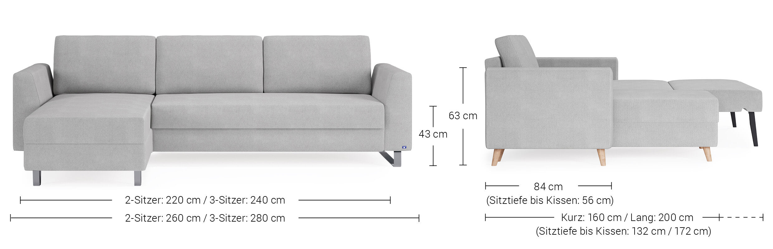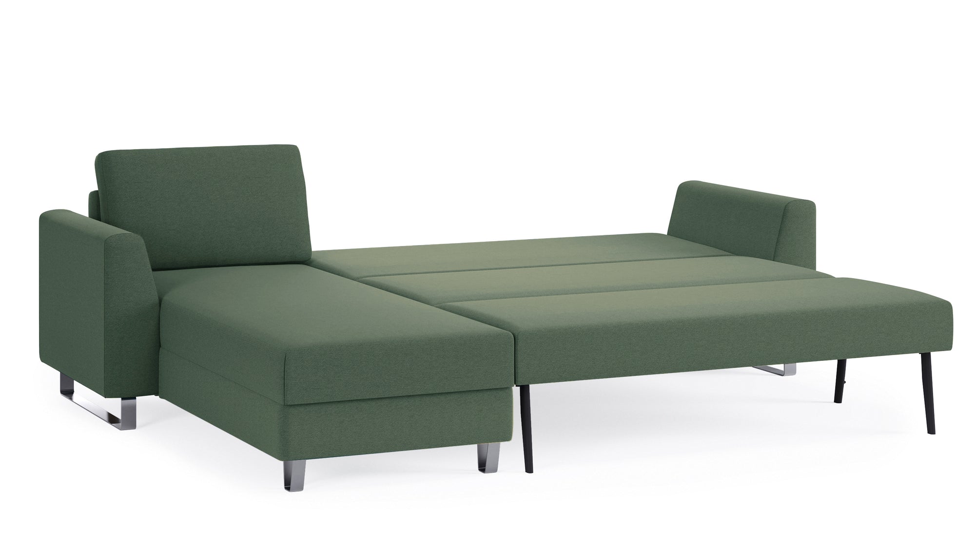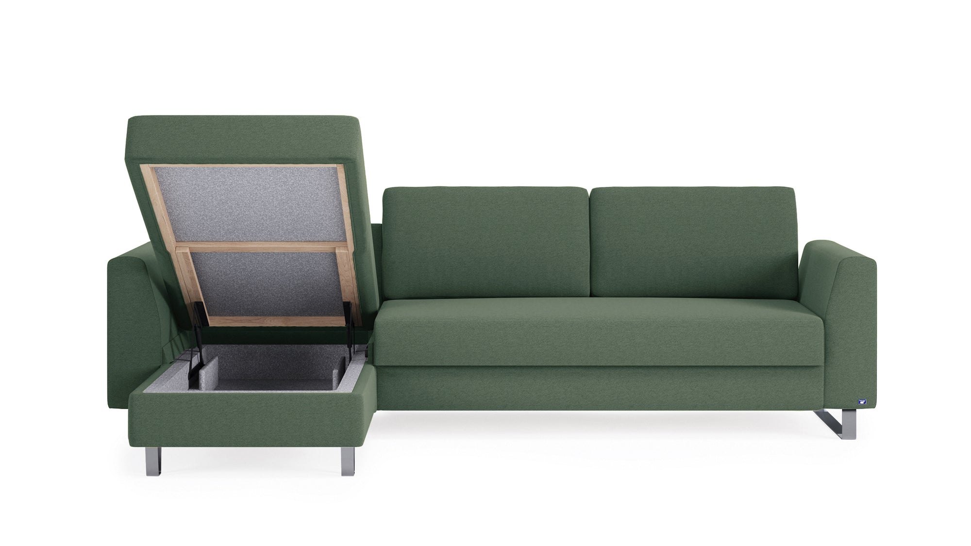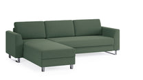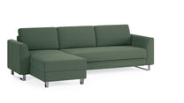 Das Schlafsofa mit Recamiere bietet extra Komfort, schenkt praktischen Stauraum und ist individuell gestaltbar: Das Eckmodul lässt sich einfach auf der rechten und linken Seite anbringen und mit dem 2-Sitzer und 3-Sitzer sowie unseren Armlehnen-Varianten Kubus, Klassik und Schmal kombinieren.