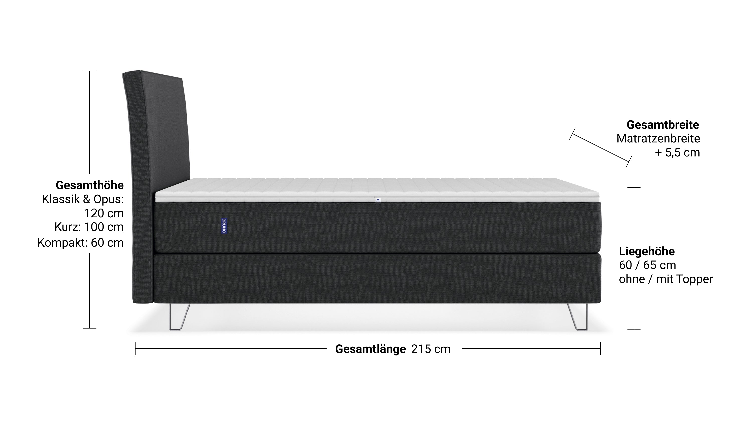 Der 7-Zonen-Spezialkern aus BrunoX-Schaum und die bis zu 3.750 Sprungfedern in Boxen und Matratze sorgen für höchsten Schlafkomfort