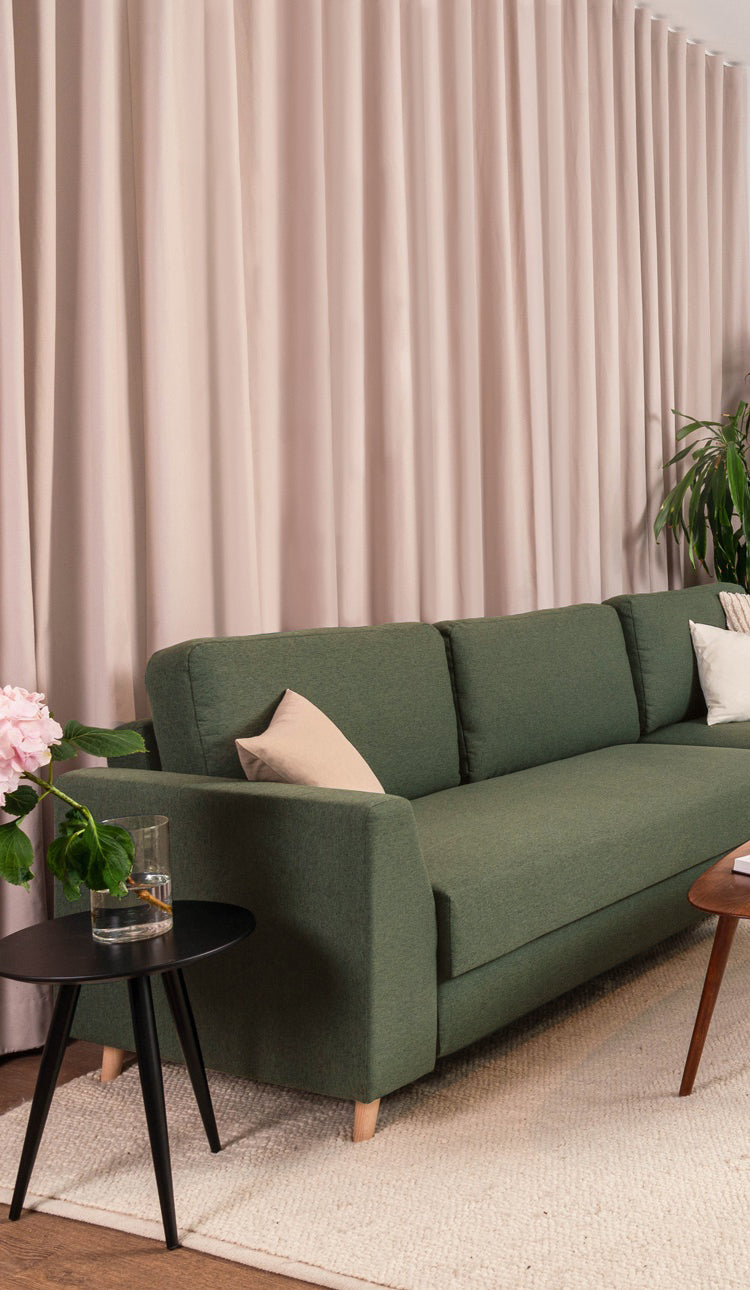 Die Schlafsofas sind mit robusten Möbelstoffen bezogen und benötigen nur wenig Pflege. Leichte, punktuelle Verschmutzungen lassen sich am einfachsten mit etwas destilliertem Wasser und einem Baumwolltuch entfernen.
