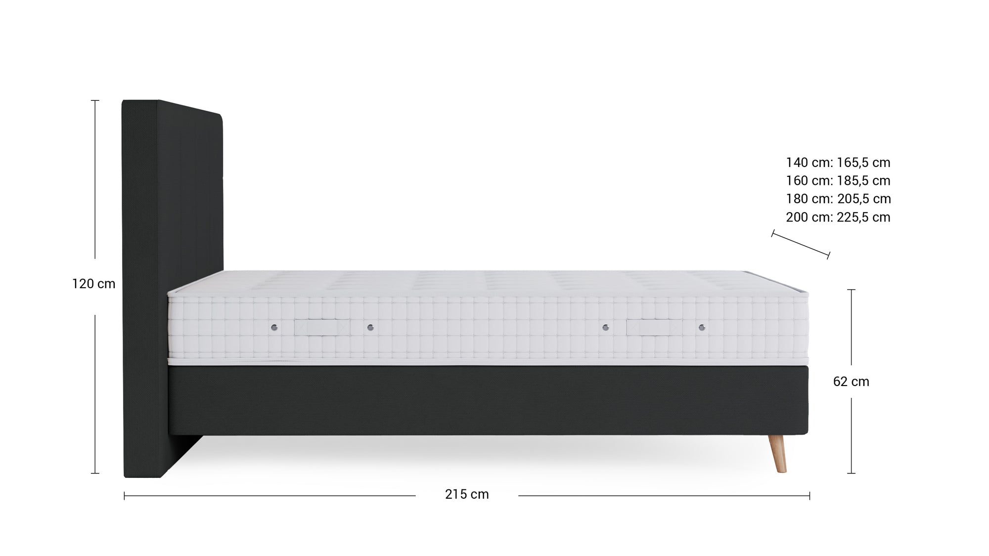 Die angenehme Einstiegshöhe von 62 cm sorgt für müheloses Ein- und Aufstehen, ganz ohne Anstrengung. Sie verleiht dem Bett eine harmonische Proportion und macht den Komfort des Bruno Boxspringbettes Prestige jeden Tag spürbar.