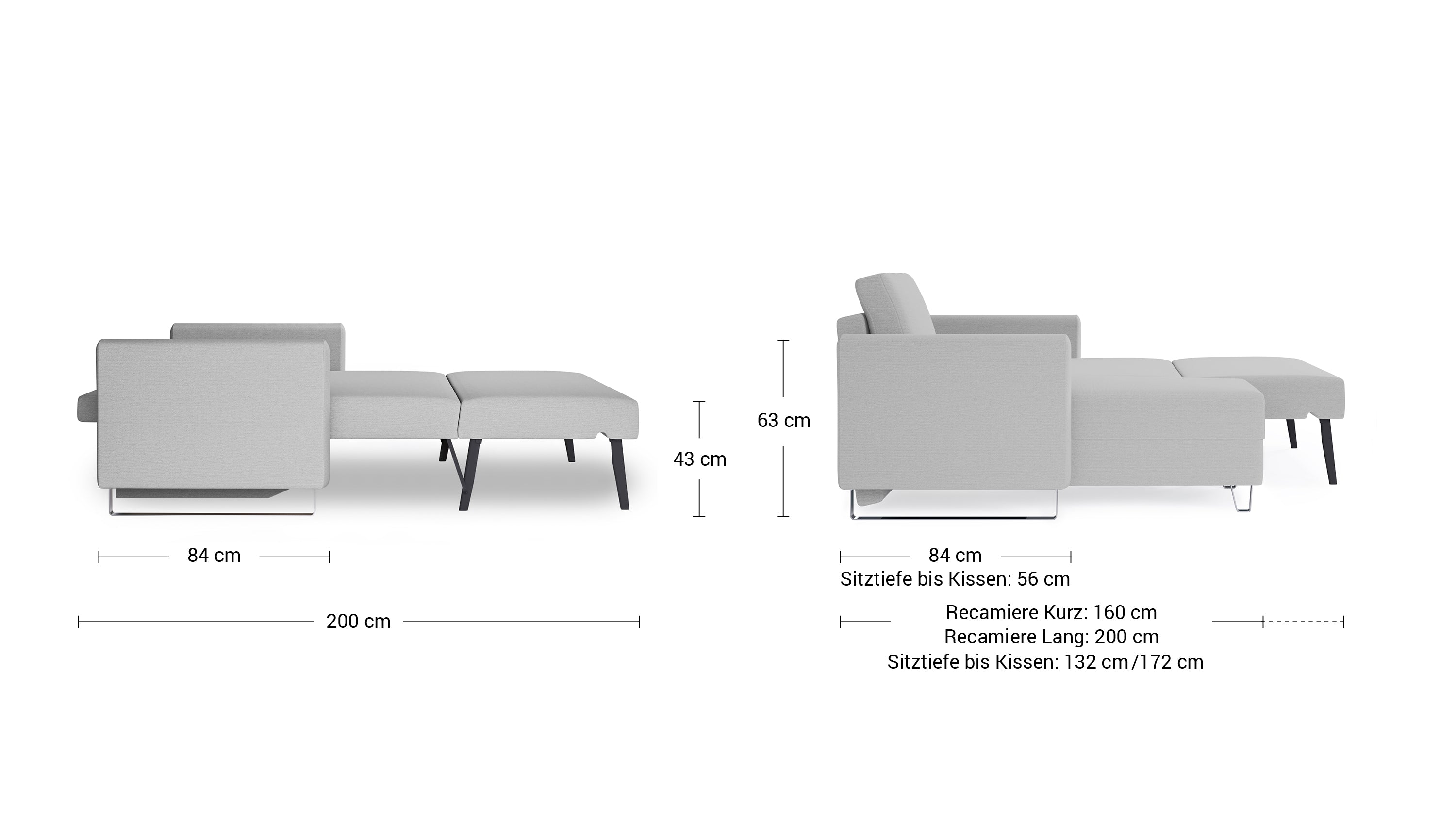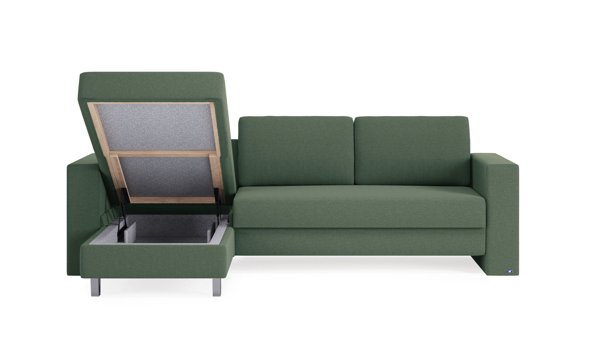 Verwandeln Sie Ihr Bruno Sofa ganz einfach in ein praktisches Ecksofa und bestellen Sie es in Verbindung mit der modularen Recamiere. Ob für die Armlehnen-Varianten Klassik, Kubus oder Schmal, den Zwei- oder Dreisitzer, die Anbringung an der linken oder rechten Seite – Sie entscheiden. Besonders praktisch: Das Eckmodul bietet durch ein Volumen von bis zu 185 Litern großzügigen Stauraum – sogar der Bruno Basic-Topper passt hier ganz einfach rein.