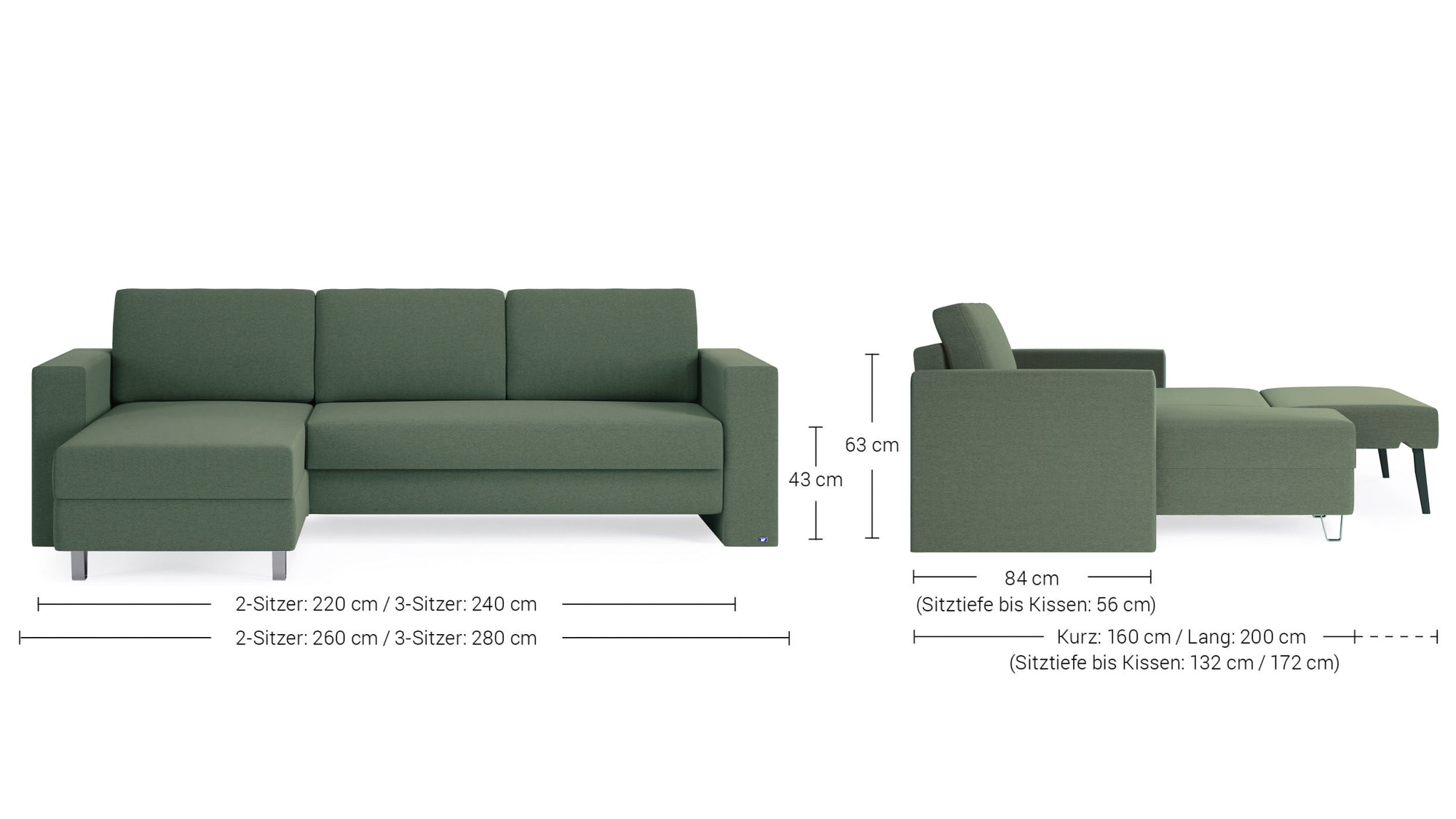 Für das Schlafsofa haben wir unsere bewährte Boxspring-Technologie weiterentwickelt und verwenden neben einer langlebigen Nosag-Federung rund 675 hochwertige Taschenfedern in jeder Schlafcouch. Ob Querschläfer, Langschläfer oder Frühauftsteher, auf unserer Bettcouch schlafen Sie himmlisch.
