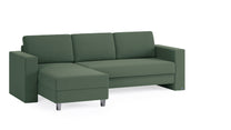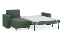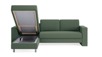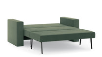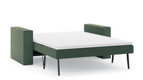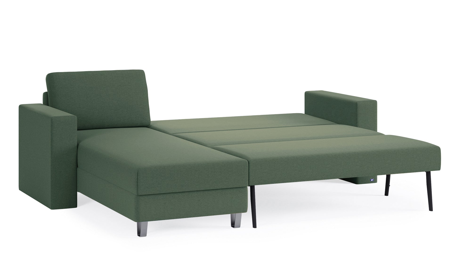 Dank des leichtgängigen und unkomplizierten Klappmechanismus und der integrierten Zuglasche, kann das Auf- und Einklappen von nur einer Person in rund 15 Sekunden erledigt werden. Die beiden Sitzkissen können im ausgeklappten Zustand entweder im Sofa untergebracht oder als Rückenlehne verwendet werden.