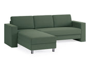 Für alle, die eine gemütliche und praktische Ergänzung zum Schlafsofa oder -sessel suchen, ist der Bruno Hocker die richtige Wahl: Er dient als gemütliche Ablage für Füße, Bücher oder ein Tablett, bietet extra Stauraum und lässt sich schnell und einfach umstellen.