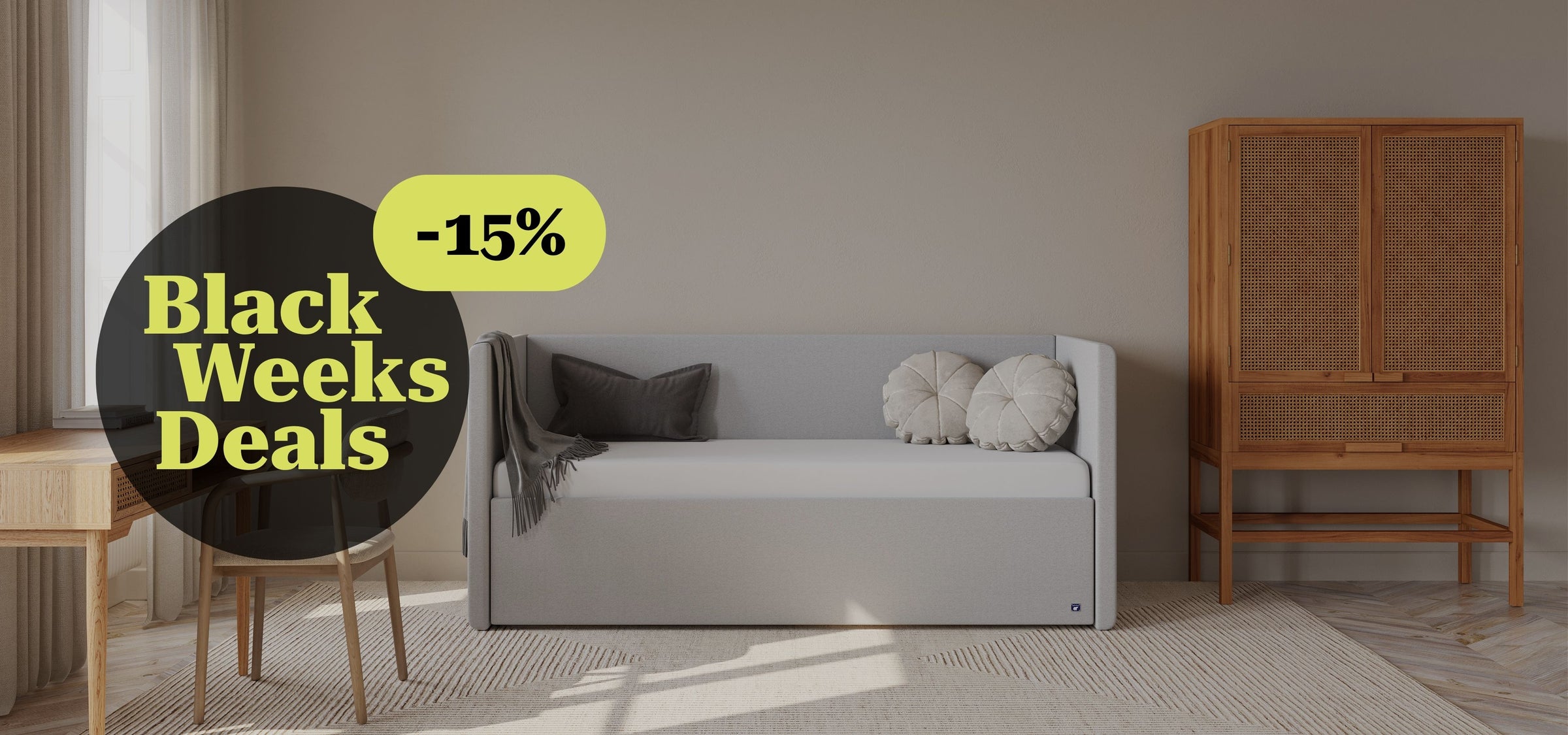 Das Bruno Flexibett vereint vier Funktionen in einem Möbelstück: Sofa, Einzelbett, ausziehbares Doppelbett und Stauraum. Hergestellt aus hochwertigem, langlebigem Massivholz bietet unser Flexibett erstklassige Qualität und Stabilität. Das skandinavische Design verbindet zeitlose Eleganz mit praktischer Vielseitigkeit. Ideal für Gästezimmer, Büro oder Kinderzimmer, bietet es sowohl einen einladenden Sitzplatz als auch eine komfortable Schlafgelegenheit für eine oder zwei Personen. Der durchdachte Sitzkomfort mit Rückenlehne sorgt für eine angenehme Haltung beim Entspannen oder Arbeiten. Einfach aufzubauen und vielseitig einsetzbar – für jeden Raum und jede Situation.