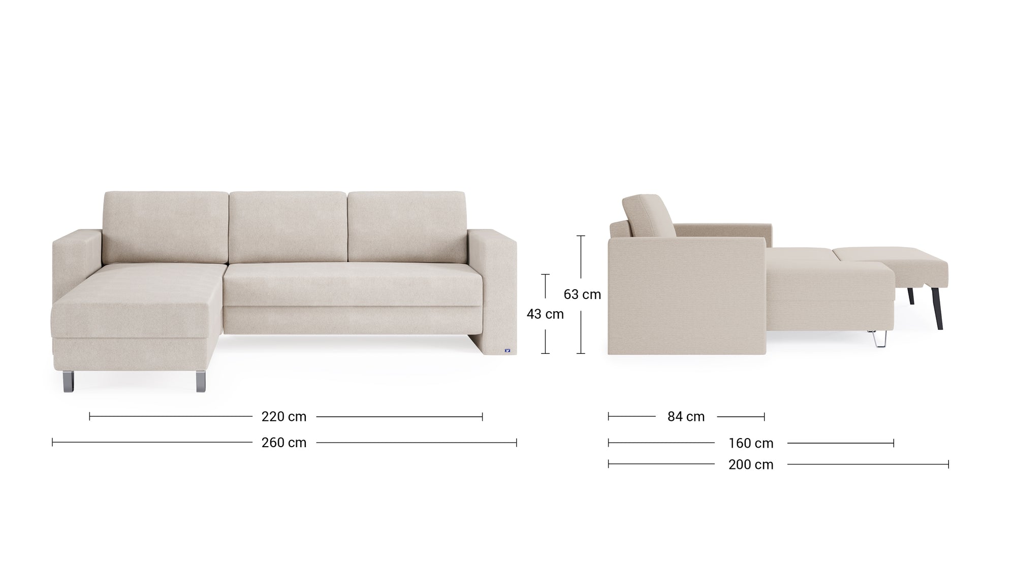 Für das Schlafsofa haben wir unsere bewährte Boxspring-Technologie weiterentwickelt und verwenden neben einer langlebigen Nosag-Federung rund 675 hochwertige Taschenfedern in jeder Schlafcouch. Ob Querschläfer, Langschläfer oder Frühauftsteher, auf unserer Bettcouch schlafen Sie himmlisch.