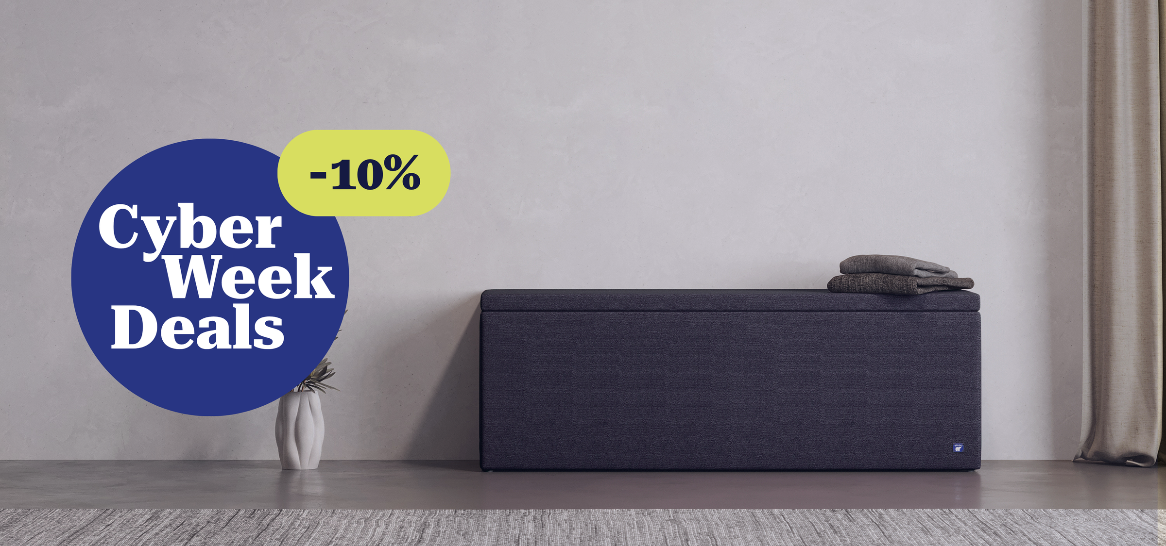 In der 160cm-breiten Bruno Betttruhe lassen sich der Premium-Topper in 140er Breite und der Basic-Topper perfekt verstauen und bei Bedarf schnell und einfach wieder hervorholen.