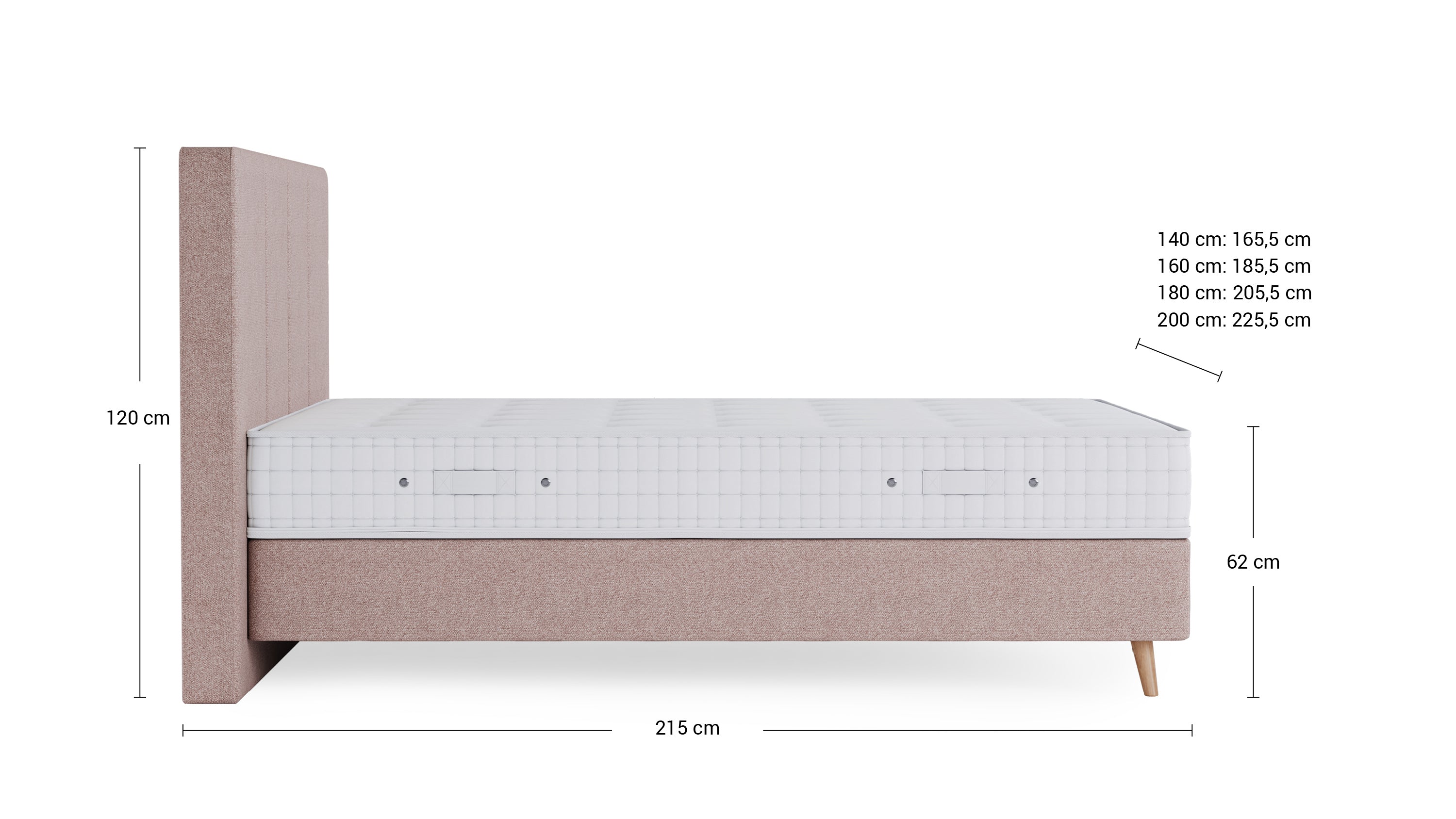 Die angenehme Einstiegshöhe von 62 cm sorgt für müheloses Ein- und Aufstehen, ganz ohne Anstrengung. Sie verleiht dem Bett eine harmonische Proportion und macht den Komfort des Bruno Boxspringbettes Prestige jeden Tag spürbar.
