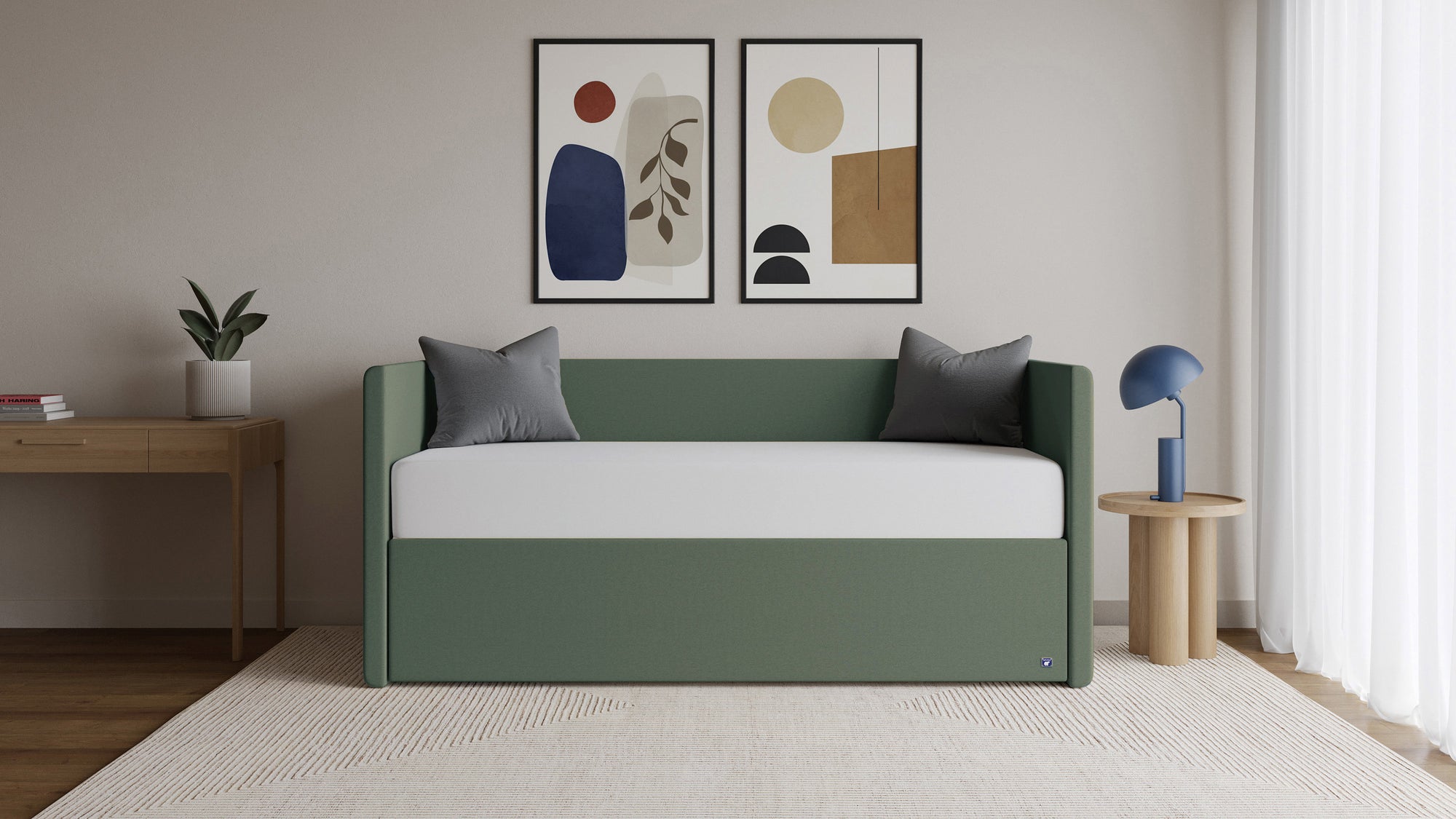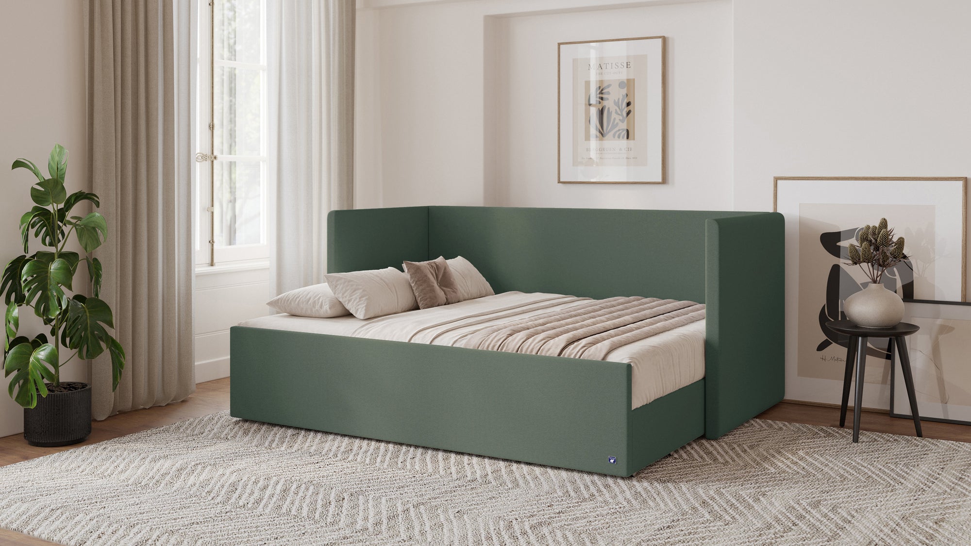 Das Bruno Flexibett vereint vier Funktionen in einem Möbelstück: Sofa, Einzelbett, ausziehbares Doppelbett und Stauraum. Hergestellt aus hochwertigem, langlebigem Massivholz bietet unser Flexibett erstklassige Qualität und Stabilität. Das skandinavische Design verbindet zeitlose Eleganz mit praktischer Vielseitigkeit. Ideal für Gästezimmer, Büro oder Kinderzimmer, bietet es sowohl einen einladenden Sitzplatz als auch eine komfortable Schlafgelegenheit für eine oder zwei Personen. Der durchdachte Sitzkomfort mit Rückenlehne sorgt für eine angenehme Haltung beim Entspannen oder Arbeiten. Einfach aufzubauen und vielseitig einsetzbar – für jeden Raum und jede Situation.