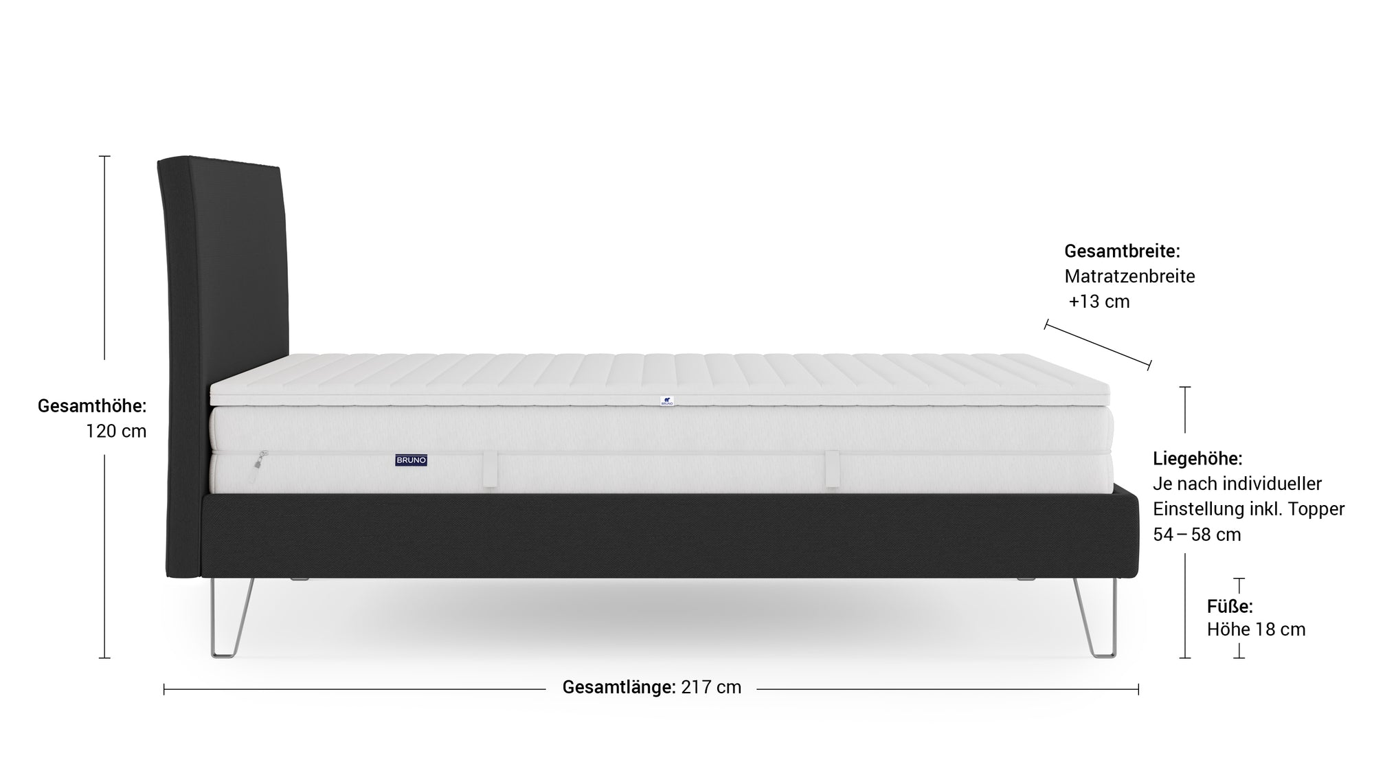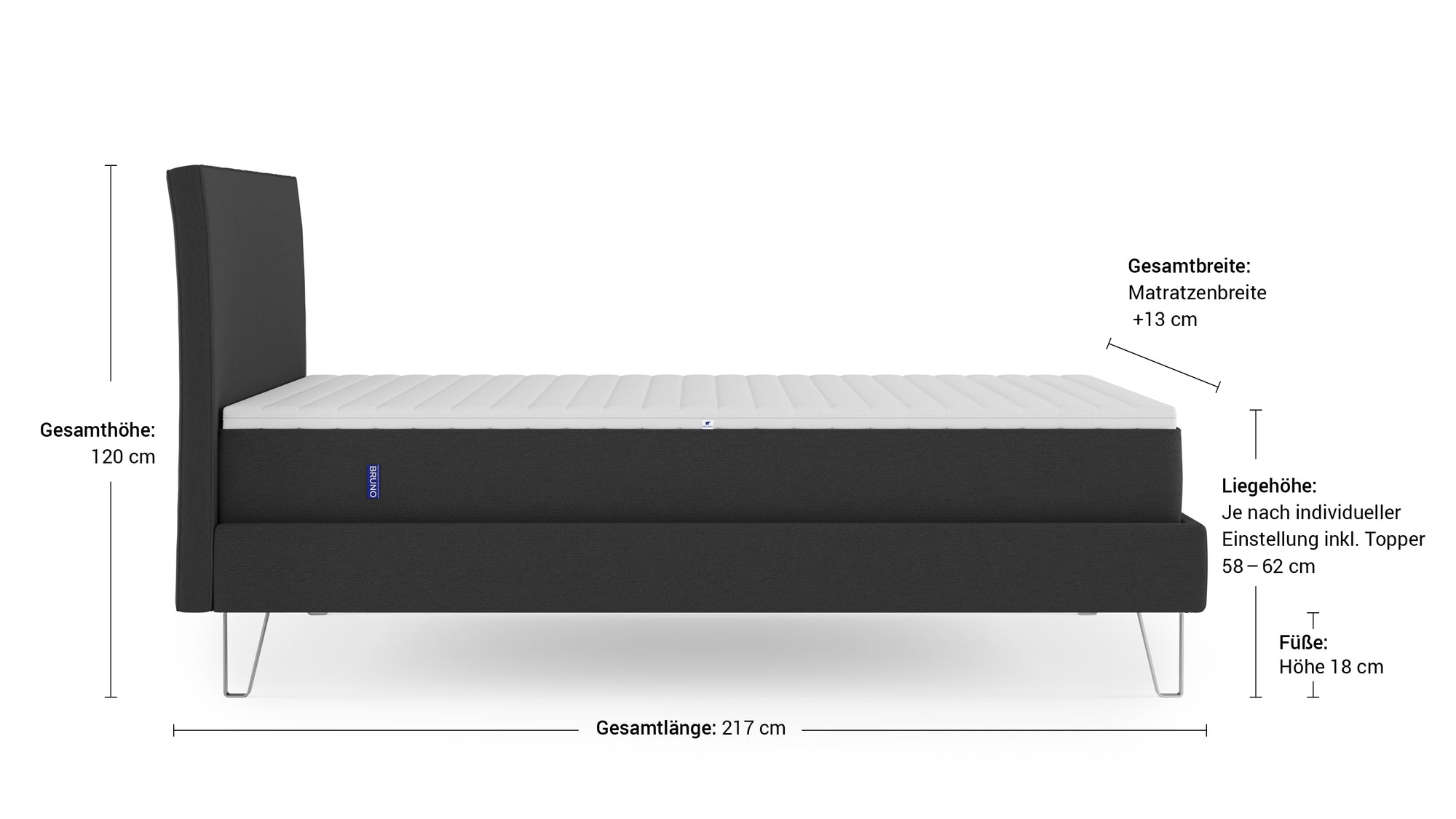 Wählen Sie zwischen zwei Matratzenvarianten, drei verschiedenen Einstiegshöhen und fünf zeitlosen Stofffarben. Optional kann das Bett mit einem Topper ergänzt werden – für ein noch weicheres Liegegefühl. So entsteht ein Schlafplatz, der genau zu Ihren Bedürfnissen passt.