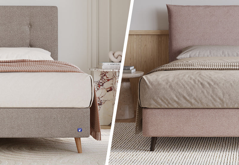 Wählen Sie zwischen der hellen Variante "Nordische Eiche" und der dunklen "Espresso Buche". Beide sind exklusiv für das Bruno Boxspringbett Prestige erhältlich und unterstreichen den individuellen Stil des Bettes.