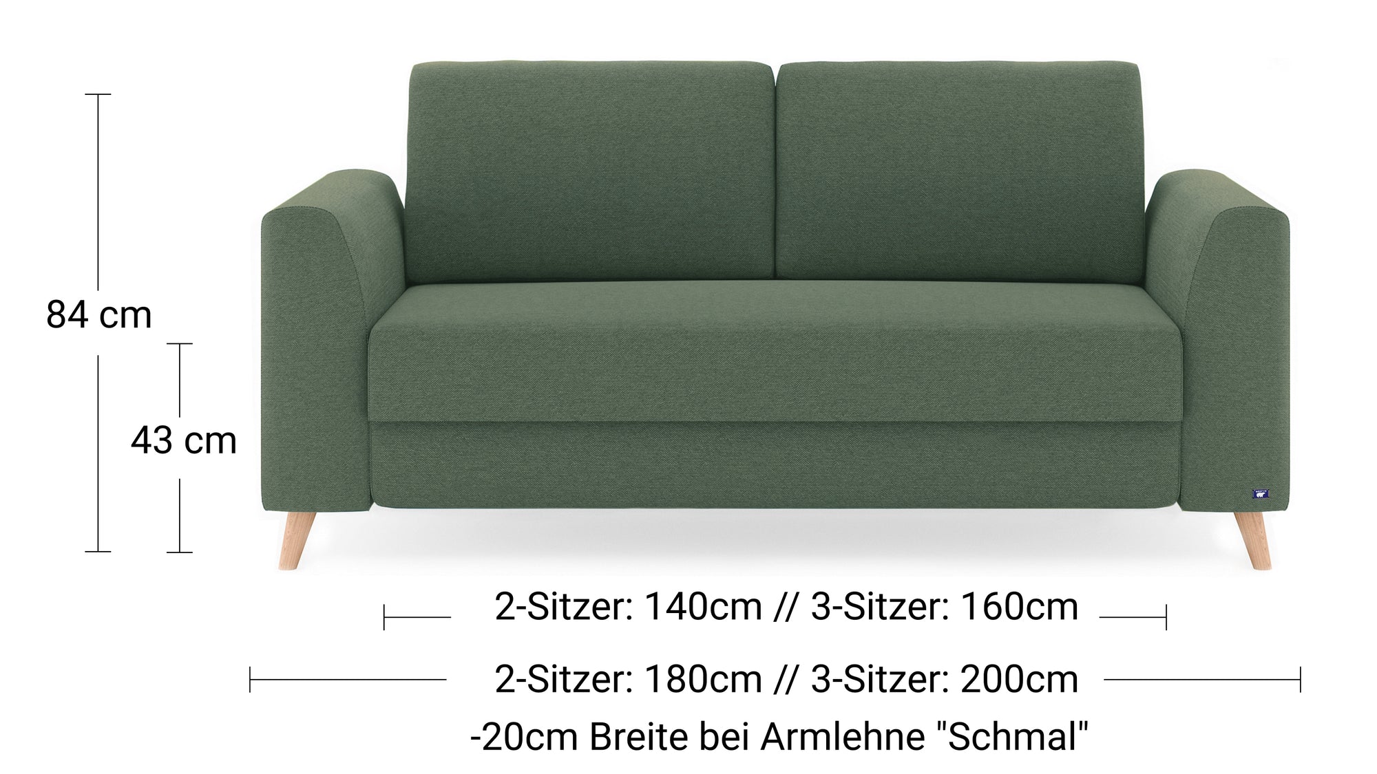 Für das Schlafsofa haben wir unsere bewährte Boxspring-Technologie weiterentwickelt und verwenden neben einer langlebigen Nosag-Federung rund 675 hochwertige Taschenfedern in jeder Schlafcouch. Ob Querschläfer, Langschläfer oder Frühauftsteher, auf unserer Bettcouch schlafen Sie himmlisch.