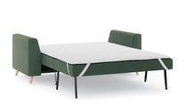 Dank des leichtgängigen und unkomplizierten Klappmechanismus und der integrierten Zuglasche, kann das Auf- und Einklappen von nur einer Person in rund 15 Sekunden erledigt werden. Die beiden Sitzkissen können im ausgeklappten Zustand entweder im Sofa untergebracht oder als Rückenlehne verwendet werden.