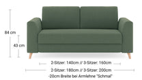 Sie können zwischen den Armlehnen Schmal, Klassik und Kubus wählen. Bei der Variante Klassik gibt es zusätzlich die Auswahl zwischen Holz- und Metallfüßen. Die Holz- und Metallfüße haben eine Höhe von 10cm.