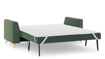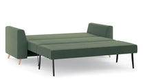 Dank des leichtgängigen und unkomplizierten Klappmechanismus und der integrierten Zuglasche, kann das Auf- und Einklappen von nur einer Person in rund 15 Sekunden erledigt werden. Die beiden Sitzkissen können im ausgeklappten Zustand entweder im Sofa untergebracht oder als Rückenlehne verwendet werden.