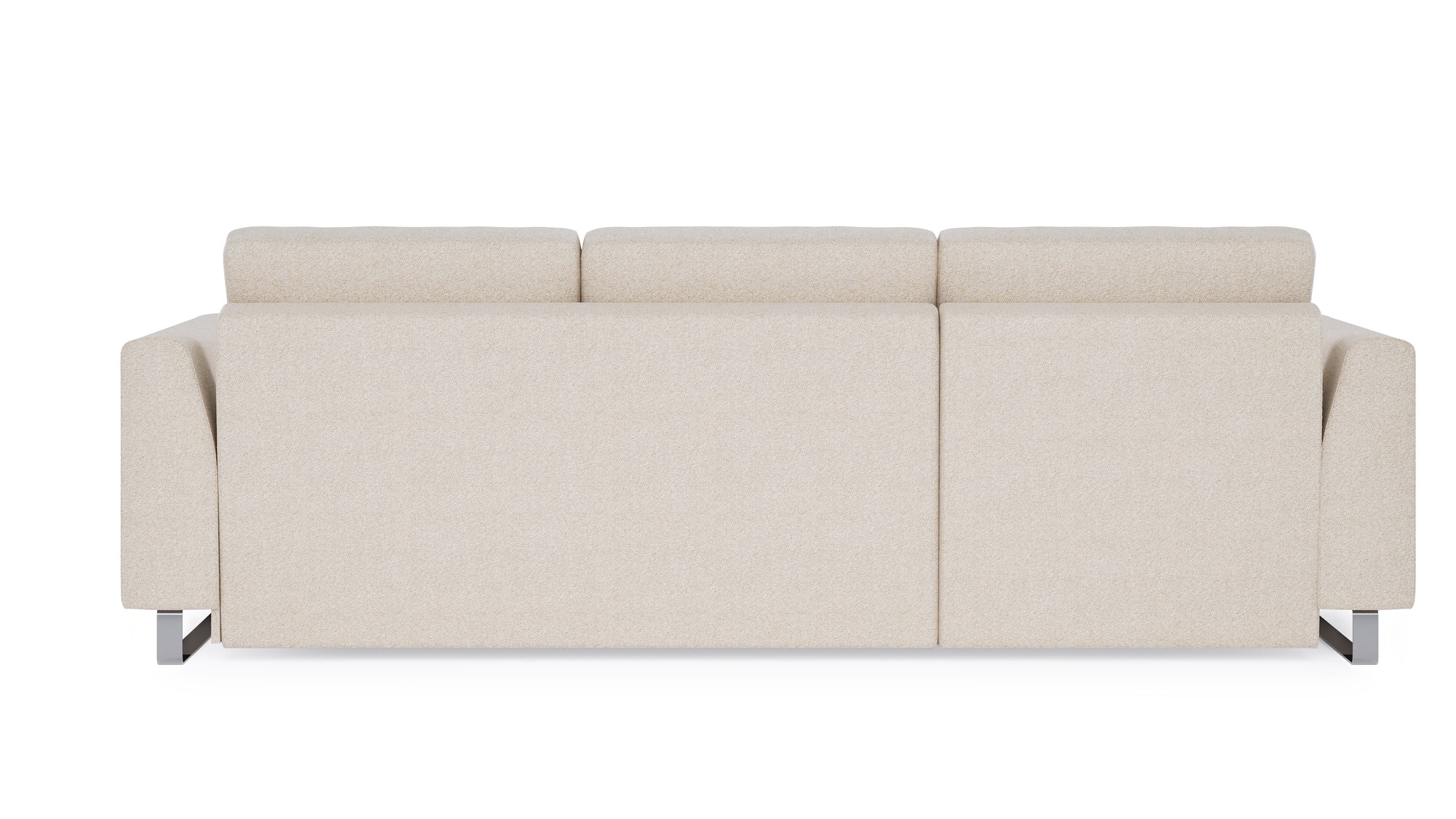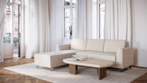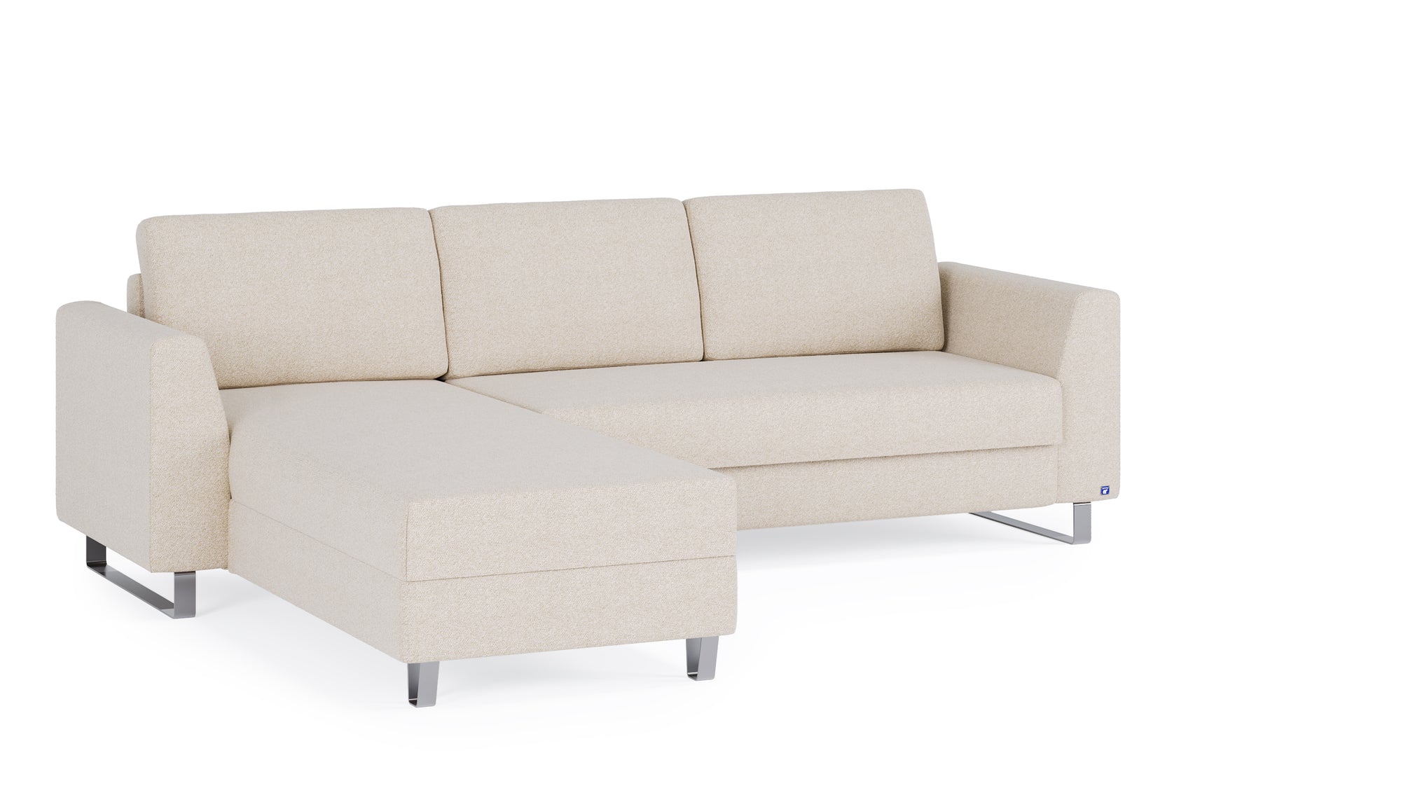 Verwandeln Sie Ihr Bruno Sofa ganz einfach in ein praktisches Ecksofa und bestellen Sie es in Verbindung mit der modularen Recamiere. Ob für die Armlehnen-Varianten Klassik, Kubus oder Schmal, den Zwei- oder Dreisitzer, die Anbringung an der linken oder rechten Seite – Sie entscheiden. Besonders praktisch: Das Eckmodul bietet durch ein Volumen von bis zu 185 Litern großzügigen Stauraum – sogar der Bruno Basic-Topper passt hier ganz einfach rein.