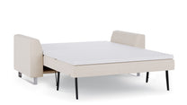 Dank des leichtgängigen und unkomplizierten Klappmechanismus und der integrierten Zuglasche, kann das Auf- und Einklappen von nur einer Person in rund 15 Sekunden erledigt werden. Die beiden Sitzkissen können im ausgeklappten Zustand entweder im Sofa untergebracht oder als Rückenlehne verwendet werden.