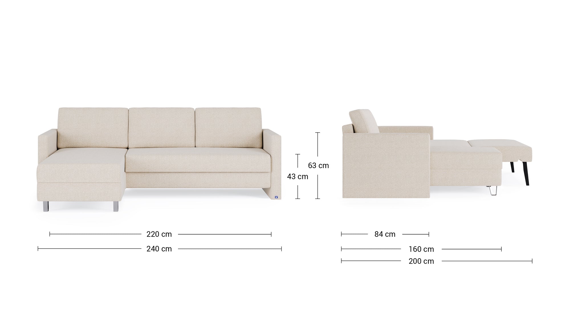 Für das Schlafsofa haben wir unsere bewährte Boxspring-Technologie weiterentwickelt und verwenden neben einer langlebigen Nosag-Federung rund 675 hochwertige Taschenfedern in jeder Schlafcouch. Ob Querschläfer, Langschläfer oder Frühauftsteher, auf unserer Bettcouch schlafen Sie himmlisch.