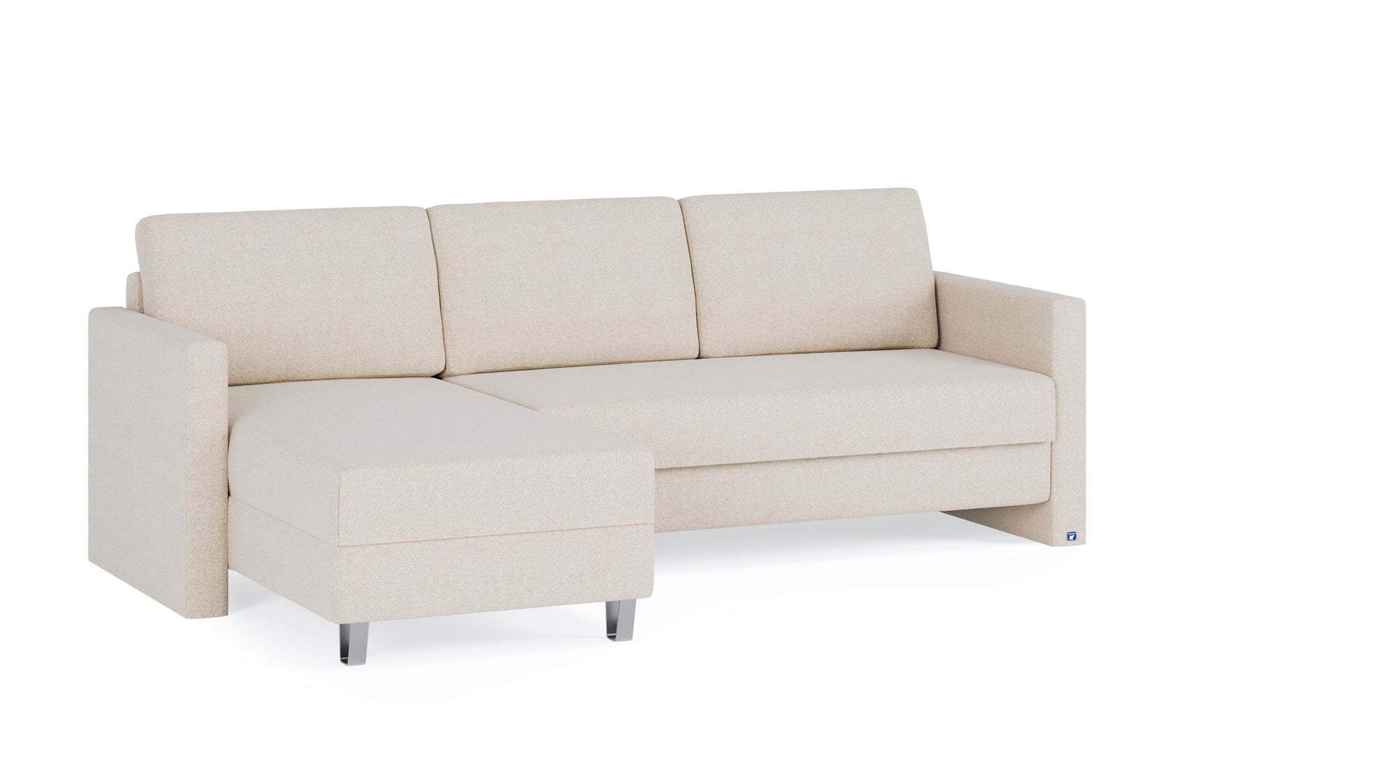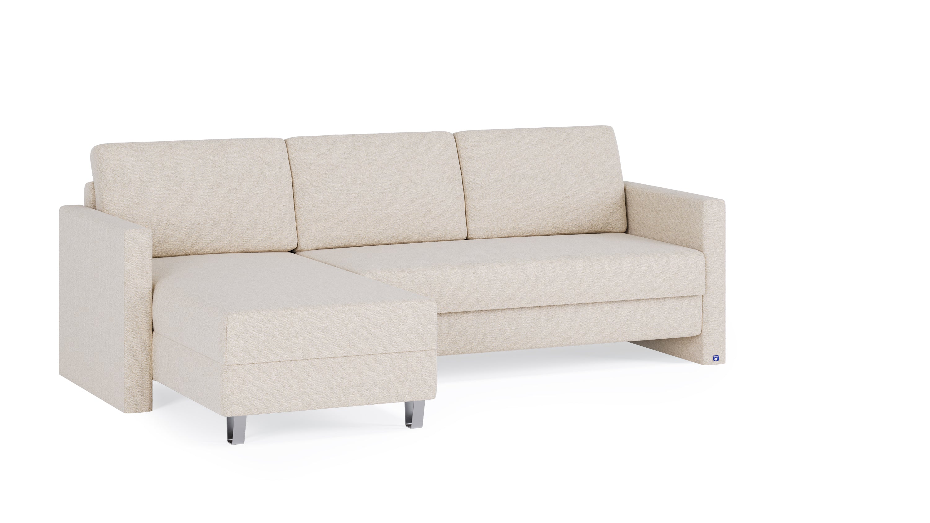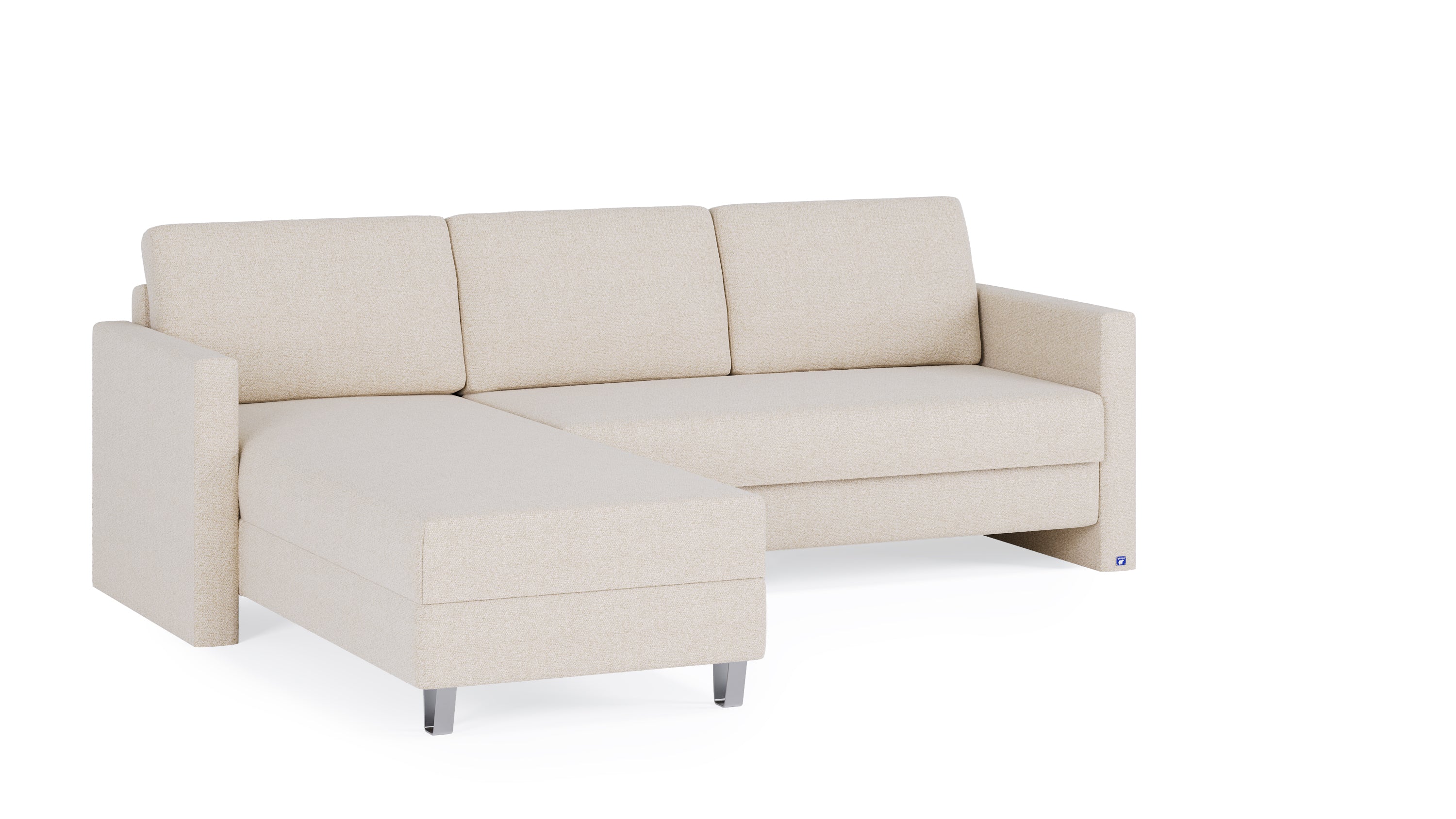 Verwandeln Sie Ihr Bruno Sofa ganz einfach in ein praktisches Ecksofa und bestellen Sie es in Verbindung mit der modularen Recamiere. Ob für die Armlehnen-Varianten Klassik, Kubus oder Schmal, den Zwei- oder Dreisitzer, die Anbringung an der linken oder rechten Seite – Sie entscheiden. Besonders praktisch: Das Eckmodul bietet durch ein Volumen von bis zu 185 Litern großzügigen Stauraum – sogar der Bruno Basic-Topper passt hier ganz einfach rein.