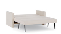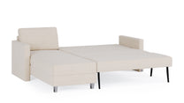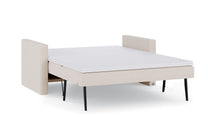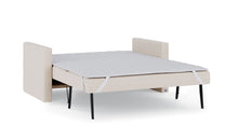 Dank des leichtgängigen und unkomplizierten Klappmechanismus und der integrierten Zuglasche, kann das Auf- und Einklappen von nur einer Person in rund 15 Sekunden erledigt werden. Die beiden Sitzkissen können im ausgeklappten Zustand entweder im Sofa untergebracht oder als Rückenlehne verwendet werden.