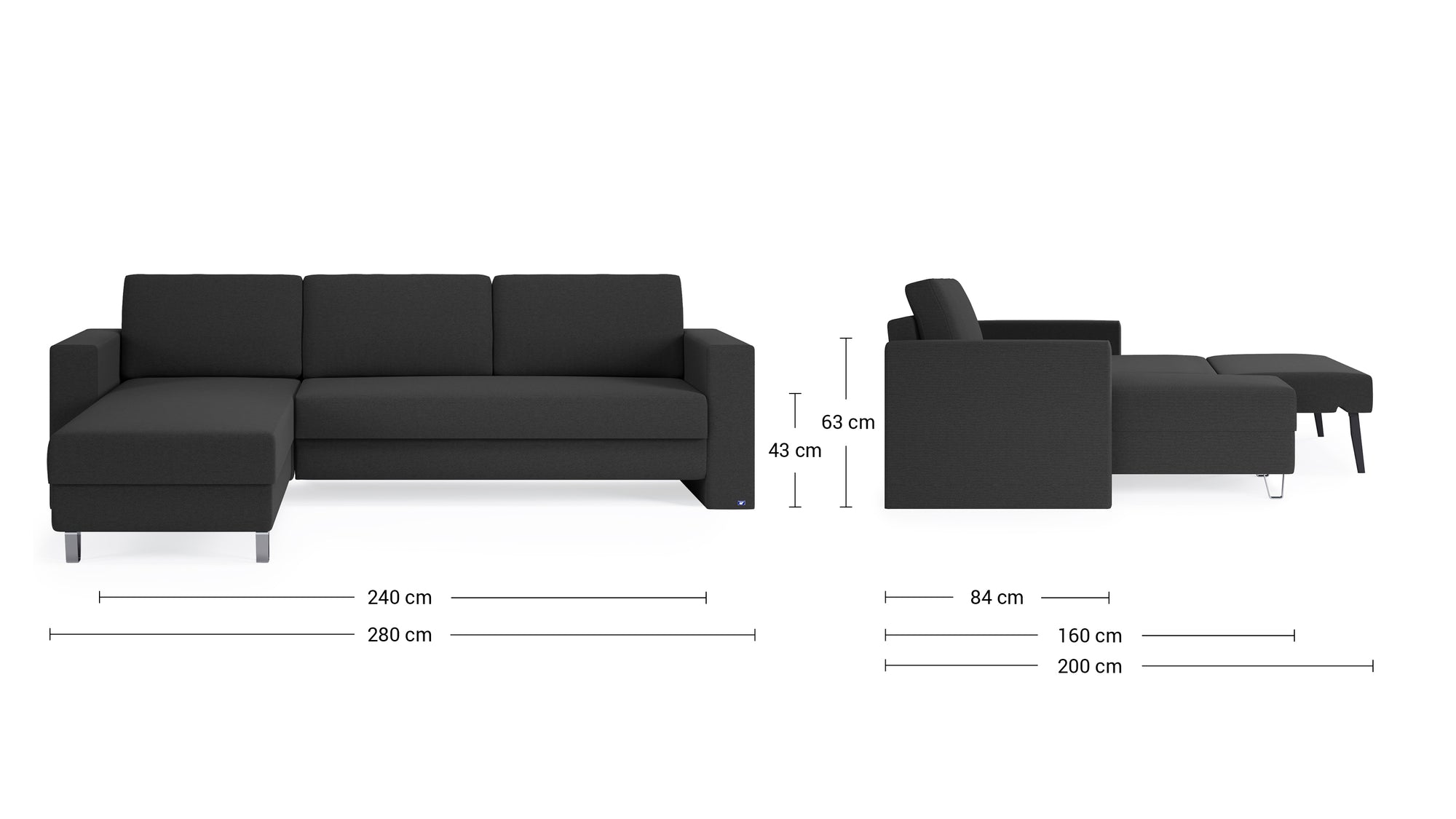 Für das Schlafsofa haben wir unsere bewährte Boxspring-Technologie weiterentwickelt und verwenden neben einer langlebigen Nosag-Federung rund 675 hochwertige Taschenfedern in jeder Schlafcouch. Ob Querschläfer, Langschläfer oder Frühauftsteher, auf unserer Bettcouch schlafen Sie himmlisch.