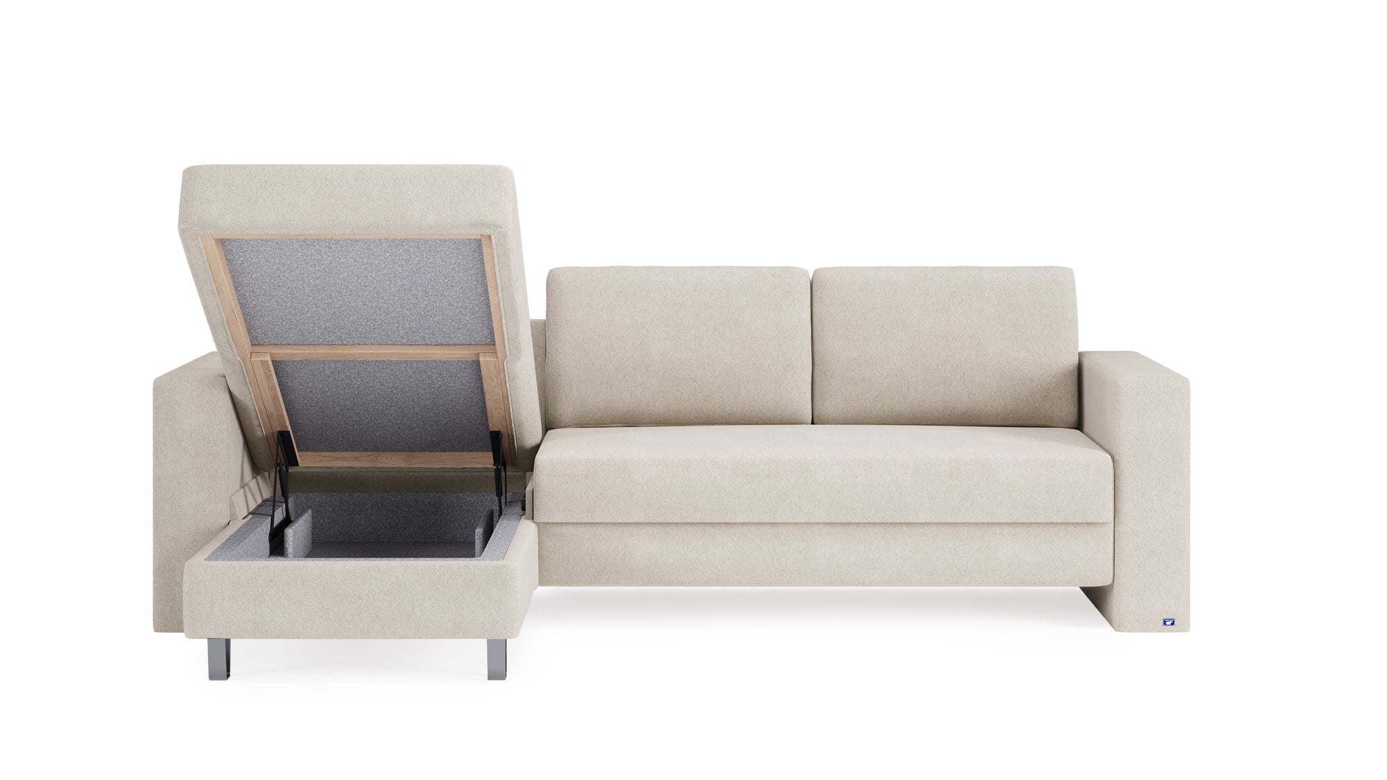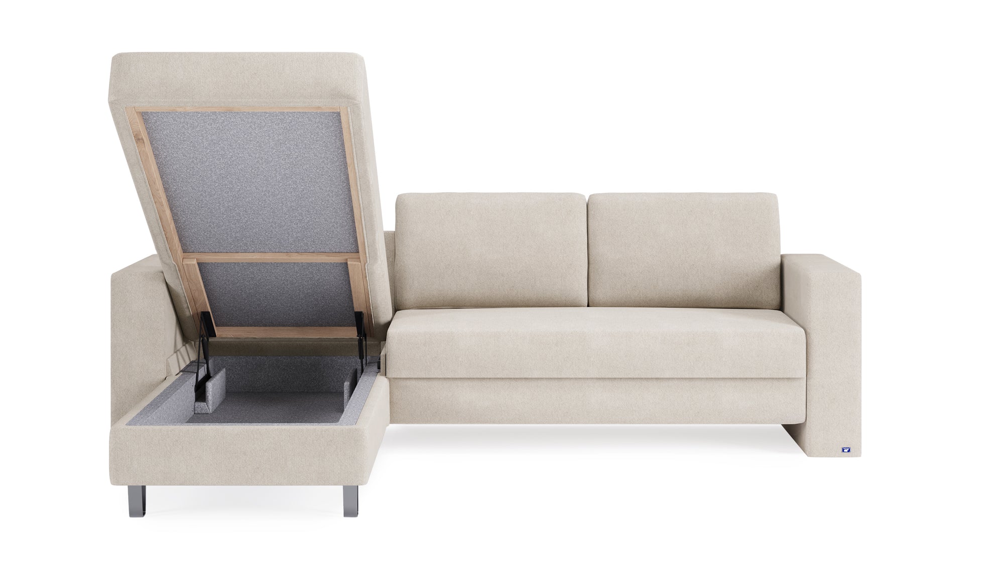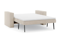 Dank des leichtgängigen und unkomplizierten Klappmechanismus und der integrierten Zuglasche, kann das Auf- und Einklappen von nur einer Person in rund 15 Sekunden erledigt werden. Die beiden Sitzkissen können im ausgeklappten Zustand entweder im Sofa untergebracht oder als Rückenlehne verwendet werden.