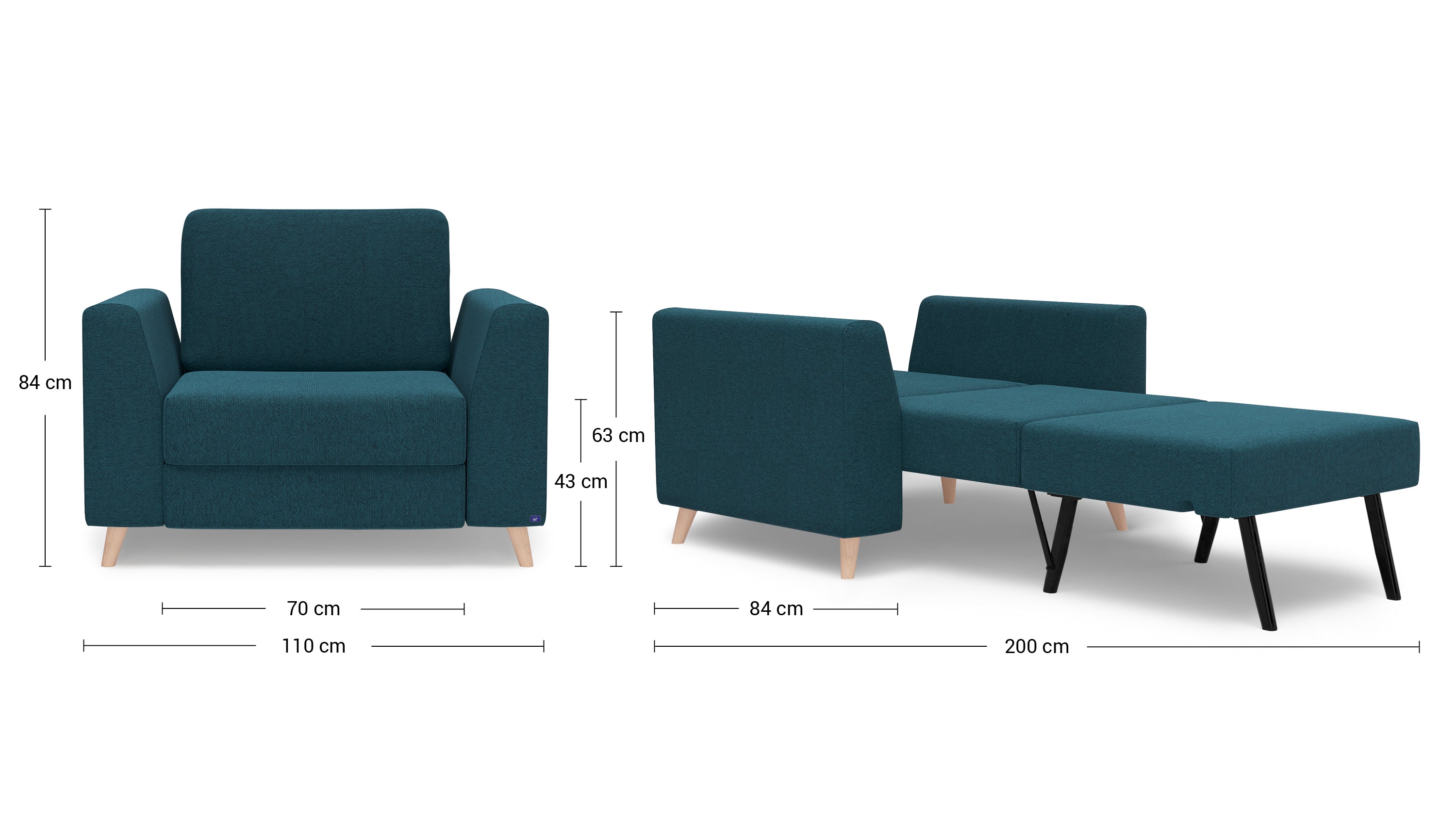 Mit einer Breite von 70 cm bietet der Schlafsessel genug Platz zum Ausruhen und ist das ideale Gästebett.